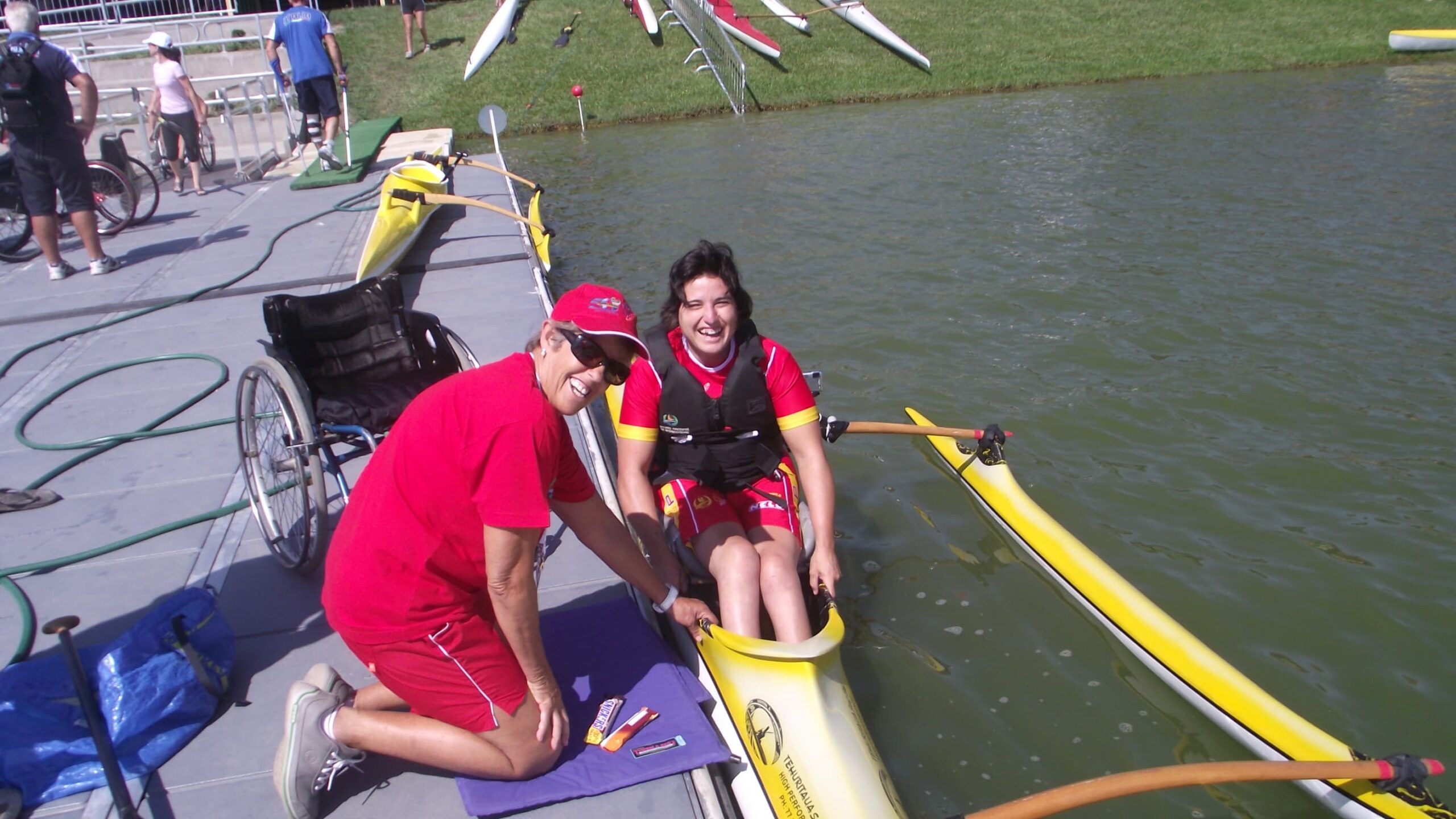 En España no existe este tipo de canoas, tengo unos amigos pioneros en estas embarcaciones, siempre me han ofrecido su apoyo incondicional para promover la Va’a. Los vi por primera vez en el 2009 en el primer Campeonato del Mundo de Paracanoe en Canada, Sandra Truccolo participando en Va’a 1 y a Daniele Scarpa como su entrenador.